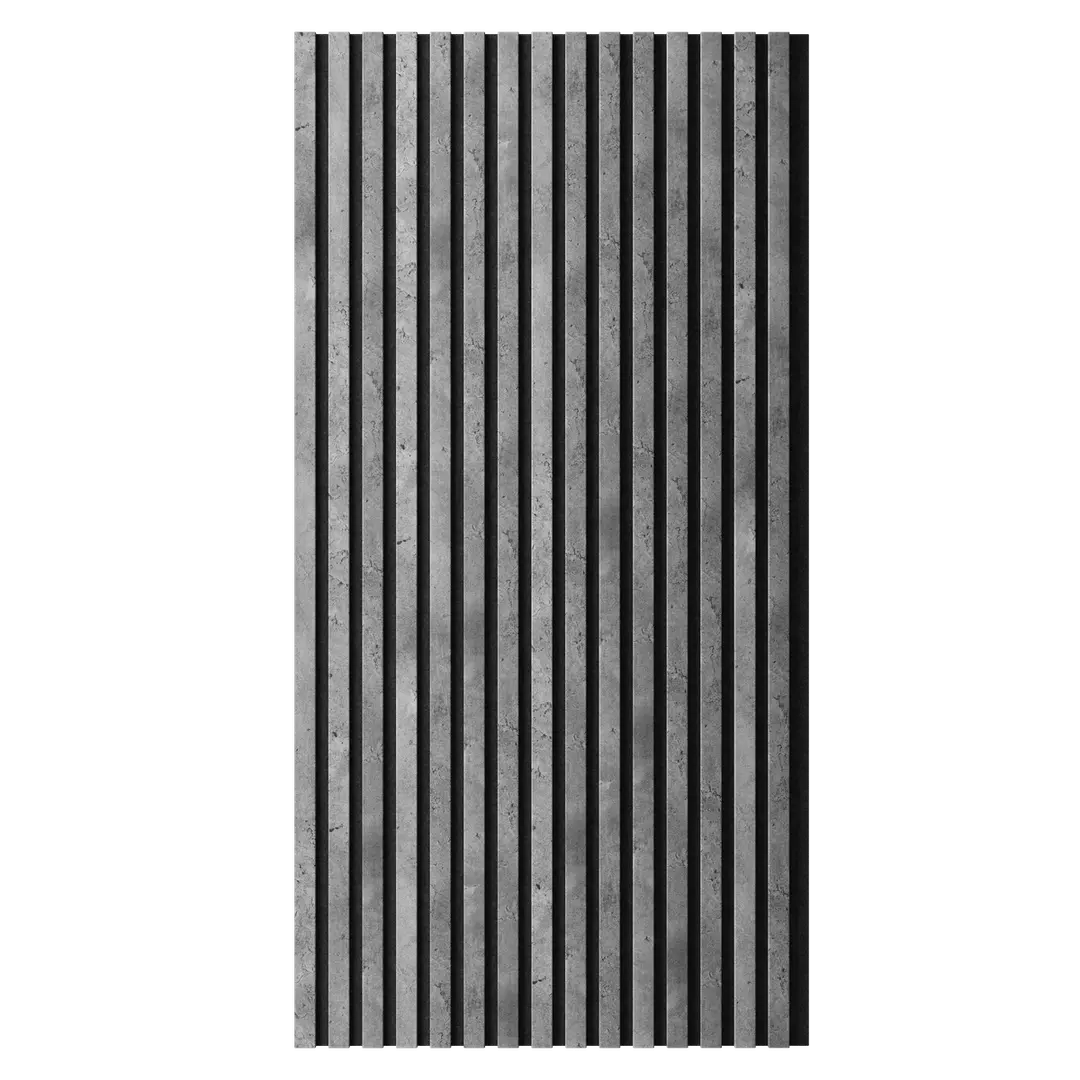Акустическая панель FLEX Бетон 1200×600 мм рейка 25х6 мм от Artiva. Артикул - AFL003, материал - МДФ+экошпон, габаритные размеры - 1200*600*9 мм. Основа черный акустический войлок толщиной 3 мм. Стыковка скрытый паз.