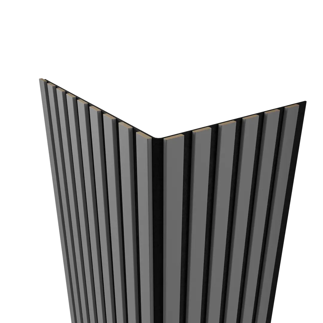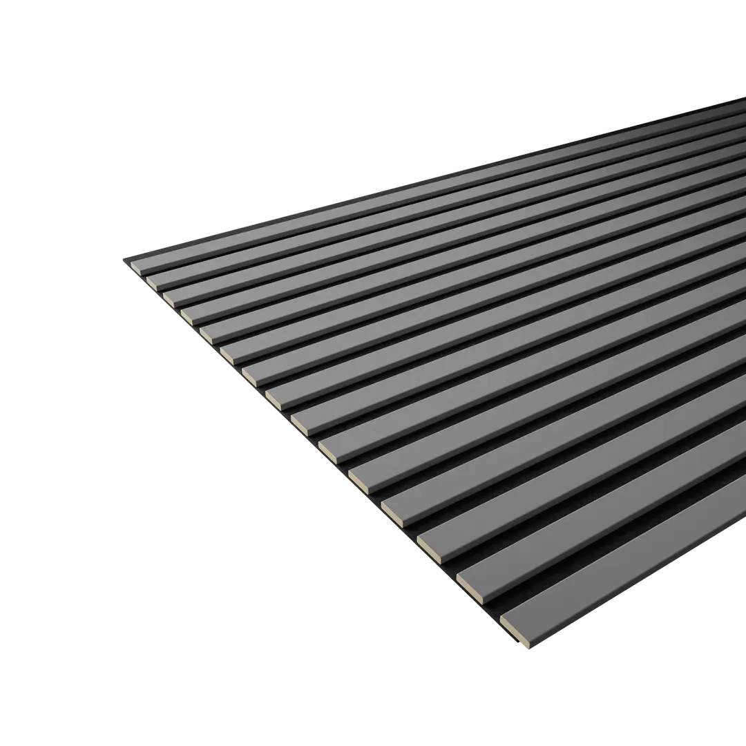 Акустическая панель FLEX Темно-серый 1200×600 мм рейка 25х6 мм от Artiva. Артикул - AFL017, материал - МДФ+экошпон, габаритные размеры - 1200*600*9 мм. Основа черный акустический войлок толщиной 3 мм. Стыковка скрытый паз.