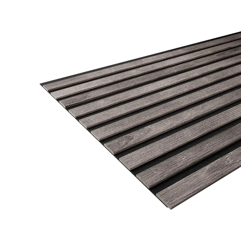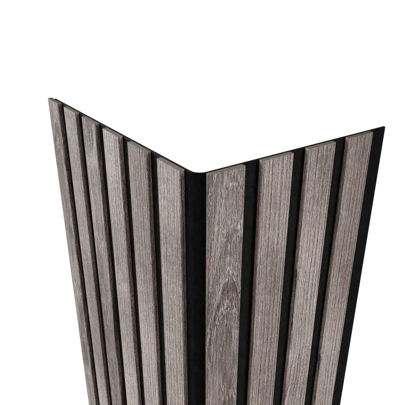 Акустическая панель FLEX Ясень Дымчатый 1200×600 мм рейка 25х6 мм от Artiva. Артикул - AFL018, материал - МДФ+экошпон, габаритные размеры - 1200*600*9 мм. Основа черный акустический войлок толщиной 3 мм. Стыковка скрытый паз.