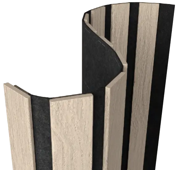 Акустическая панель FLEX Ясень Кристалл 1200×600 мм рейка 40х6 мм от Artiva. Артикул - AFL019, материал - МДФ+экошпон, габаритные размеры - 1200*600*9 мм. Основа черный акустический войлок толщиной 3 мм. Стыковка скрытый паз.