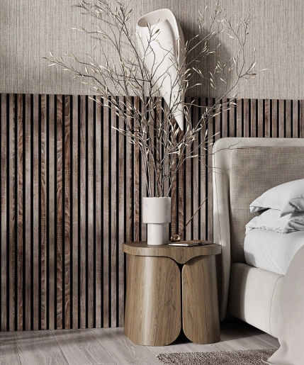Основа панелей – акустический войлок 9мм. Изготовлен из экологичного волокна, устойчив к влаге, долговечен, воздухопроницаем, подавляет и преломляет звуковые волны. Декор панелей – рейки из черного мебельного МДФ, облицованные шпоном: устойчивы к деформации, привносят в интерьер умиротворение и гармонию, сохраняют связь с природой.