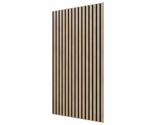 Основа панелей – акустический войлок 9мм. Изготовлен из экологичного волокна, устойчив к влаге, долговечен, воздухопроницаем, подавляет и преломляет звуковые волны. Декор панелей – рейки из черного мебельного МДФ, облицованные шпоном: устойчивы к деформации, привносят в интерьер умиротворение и гармонию, сохраняют связь с природой.