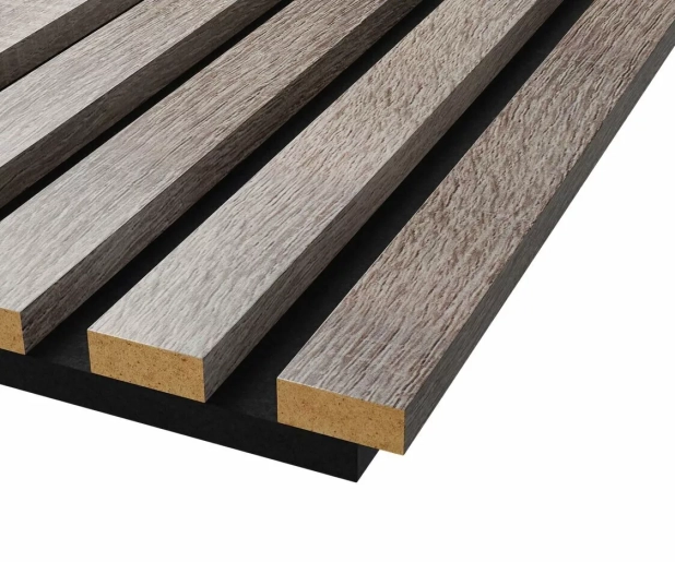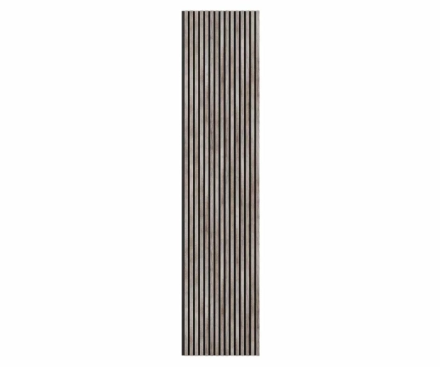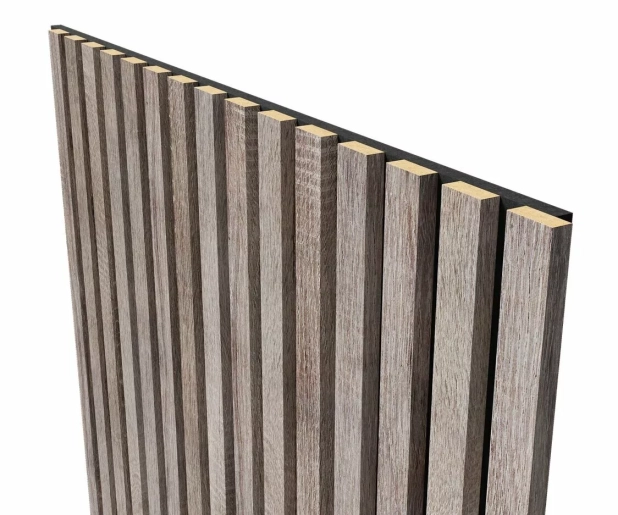 Акустическая панель, черный войлок, 2750х600х19мм, рейки МДФ дуб дымчатый. Серия Сканди. Акустические панели Cosca decor – это уникальный по функционалу декоративно-отделочный материал: акустический комфорт в помещении без эха и шума снаружи, современный скандинавский дизайн, легкий самостоятельный монтаж даже поверх старых обоев.