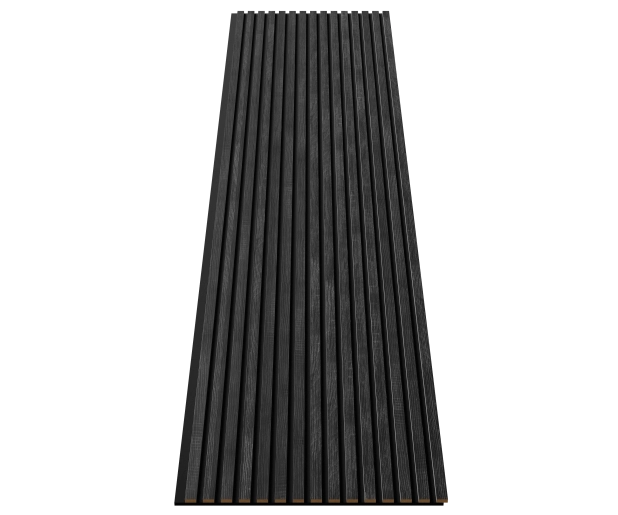 Основа панелей – акустический войлок 9мм. Изготовлен из экологичного волокна, устойчив к влаге, долговечен, воздухопроницаем, подавляет и преломляет звуковые волны. Декор панелей – рейки из черного мебельного МДФ, облицованные шпоном: устойчивы к деформации, привносят в интерьер умиротворение и гармонию, сохраняют связь с природой.