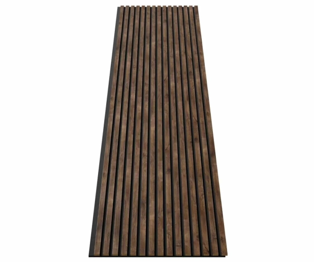 Акустическая панель, черный войлок, 2750х600х19мм, рейки МДФ дуб старинный натуральный. Серия Сканди. Акустические панели Cosca decor – это уникальный по функционалу декоративно-отделочный материал: акустический комфорт в помещении без эха и шума снаружи, современный скандинавский дизайн, легкий самостоятельный монтаж даже поверх старых обоев.