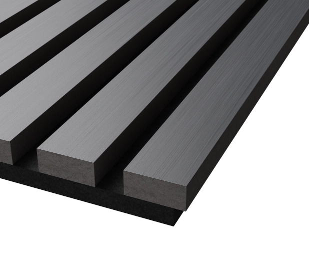 Основа панелей – акустический войлок 9мм. Изготовлен из экологичного волокна, устойчив к влаге, долговечен, воздухопроницаем, подавляет и преломляет звуковые волны. Декор панелей – рейки из черного мебельного МДФ, облицованные шпоном: устойчивы к деформации, привносят в интерьер умиротворение и гармонию, сохраняют связь с природой.