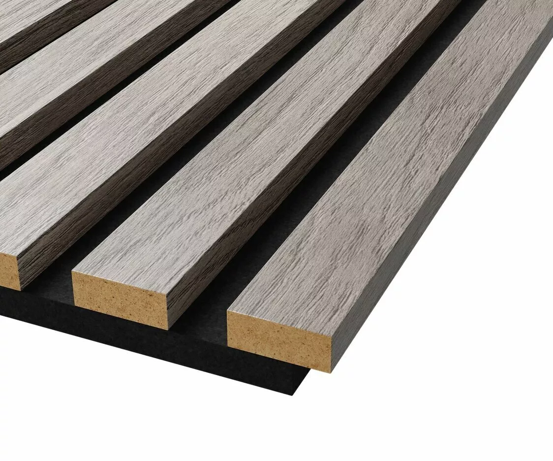 Акустическая панель, черный войлок, 600х600х19мм, рейки МДФ дуб старинный светло-серый. Серия Сканди. Акустические панели Cosca decor – это уникальный по функционалу декоративно-отделочный материал: акустический комфорт в помещении без эха и шума снаружи, современный скандинавский дизайн, легкий самостоятельный монтаж даже поверх старых обоев.