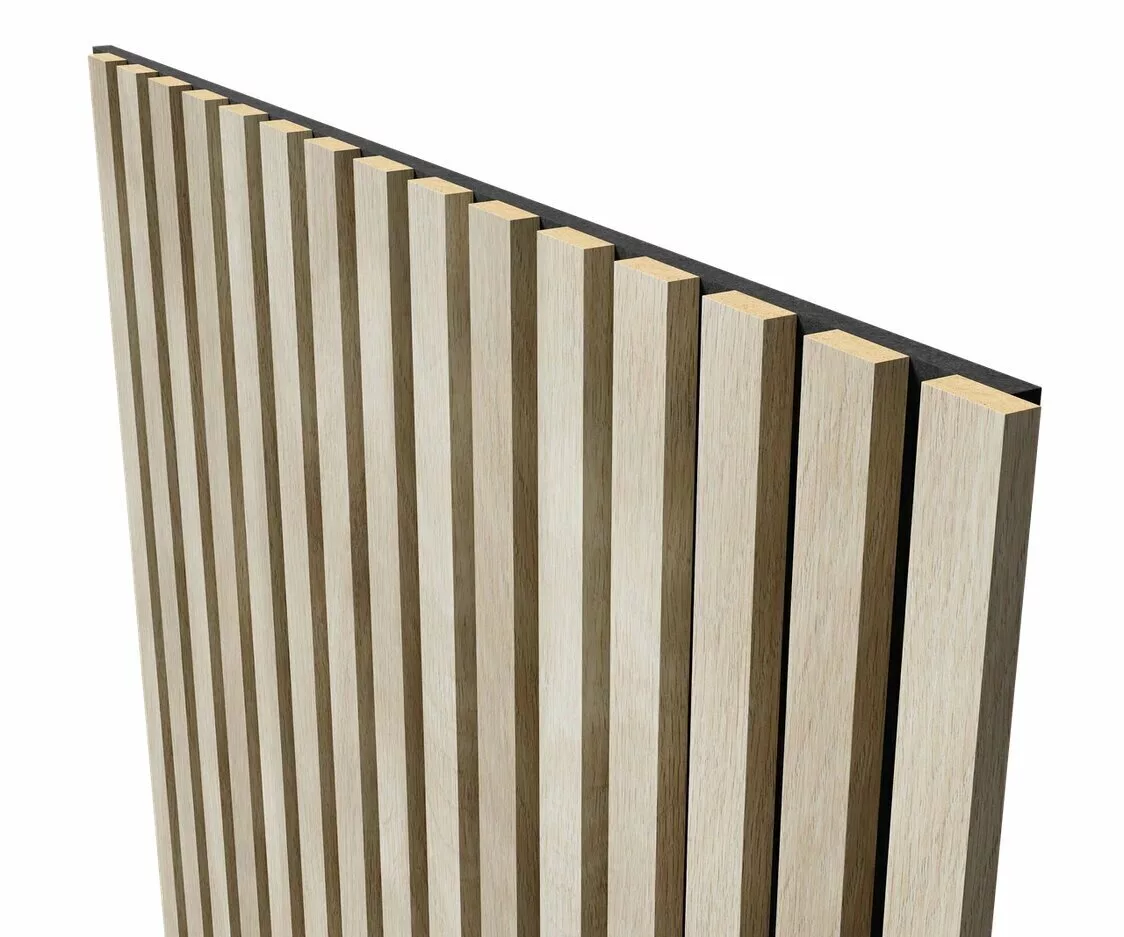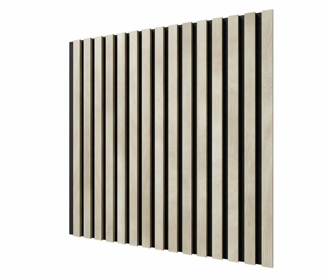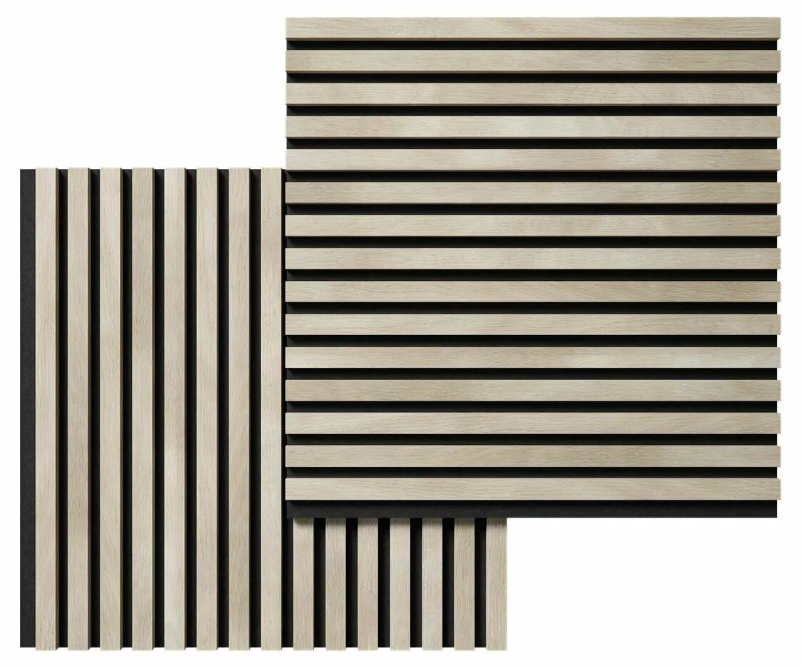 Акустическая панель, черный войлок, 600х600х19мм, рейки МДФ ясень кристалл. Серия Сканди. Акустические панели Cosca decor – это уникальный по функционалу декоративно-отделочный материал: акустический комфорт в помещении без эха и шума снаружи, современный скандинавский дизайн, легкий самостоятельный монтаж даже поверх старых обоев.