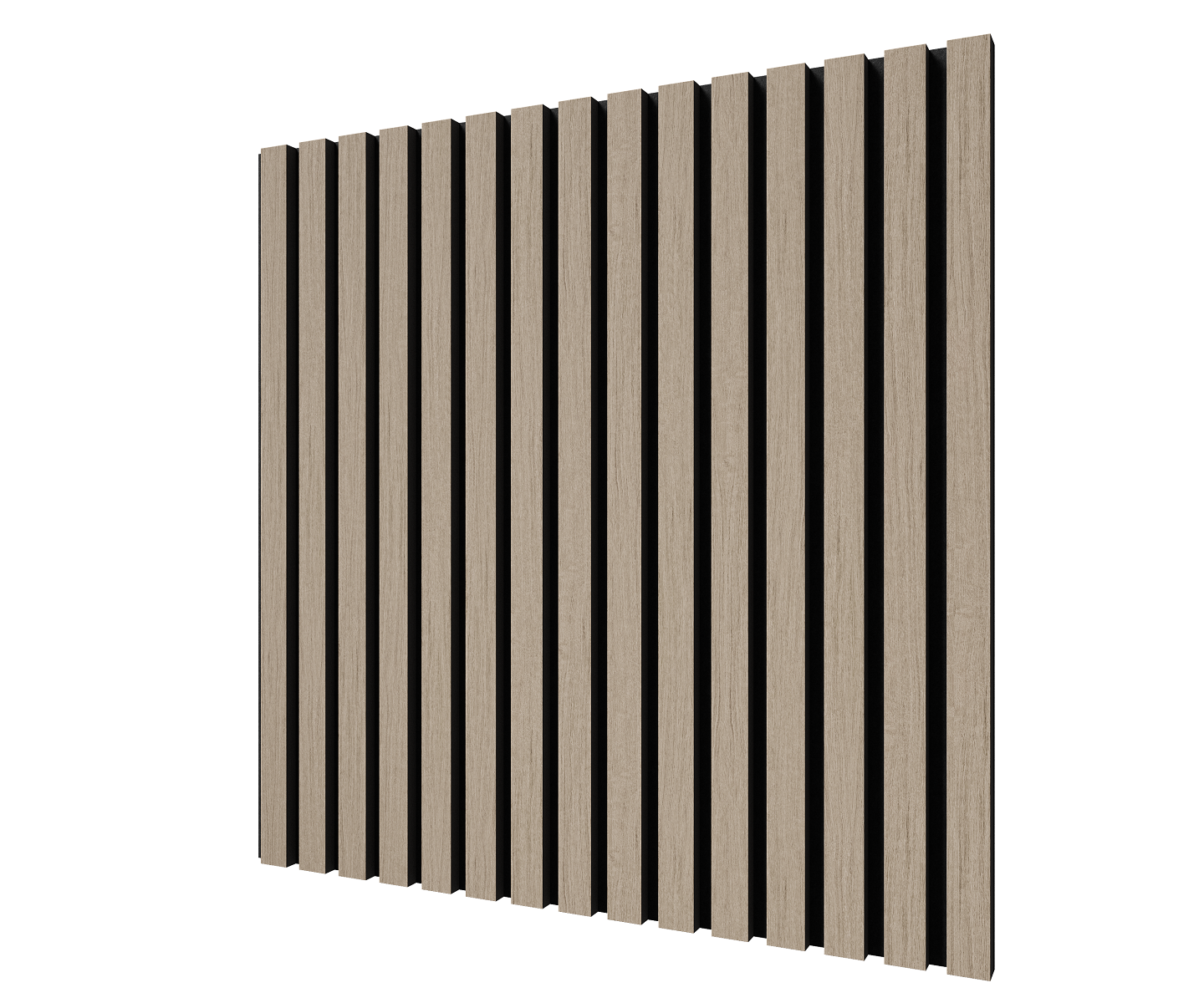 Акустическая панель, черный войлок, 600х600х21мм, рейки МДФ, шпон дуб латте бежевый. Серия Монако. Акустические панели Cosca decor – это уникальный по функционалу декоративно-отделочный материал: акустический комфорт в помещении без эха и шума снаружи, современный скандинавский дизайн, легкий самостоятельный монтаж даже поверх старых обоев.