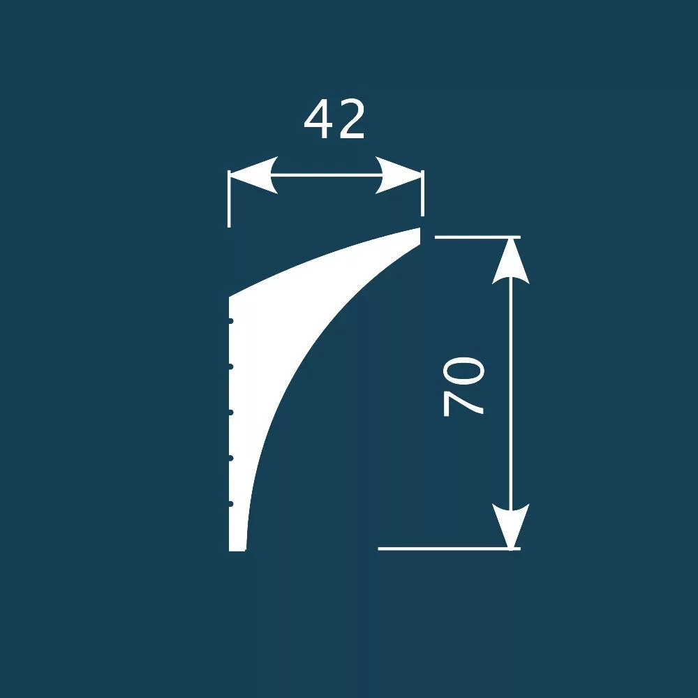 Карниз KX007, 70х42, 2000мм, Экополимер/9. Карниз Cosca Decor изготовлен из ударопрочного экополимера – это композит с добавлением светостабилизатора. Материал изделия уже огрунтован в своей массе, благодаря чему его можно не окрашивать. Он сохранит белый цвет и не пожелтеет со временем. Красить также легко, с экономией на краске, так как грунтовка уже есть!