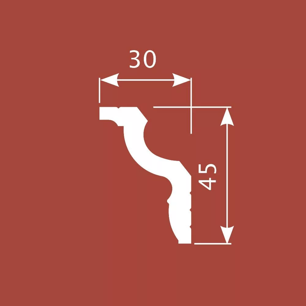 Карниз KX022, 45х30, 2000мм, Экополимер/25. Карниз Cosca Decor изготовлен из ударопрочного экополимера – это композит с добавлением светостабилизатора. Материал изделия уже огрунтован в своей массе, благодаря чему его можно не окрашивать. Он сохранит белый цвет и не пожелтеет со временем. Красить также легко, с экономией на краске, так как грунтовка уже есть!