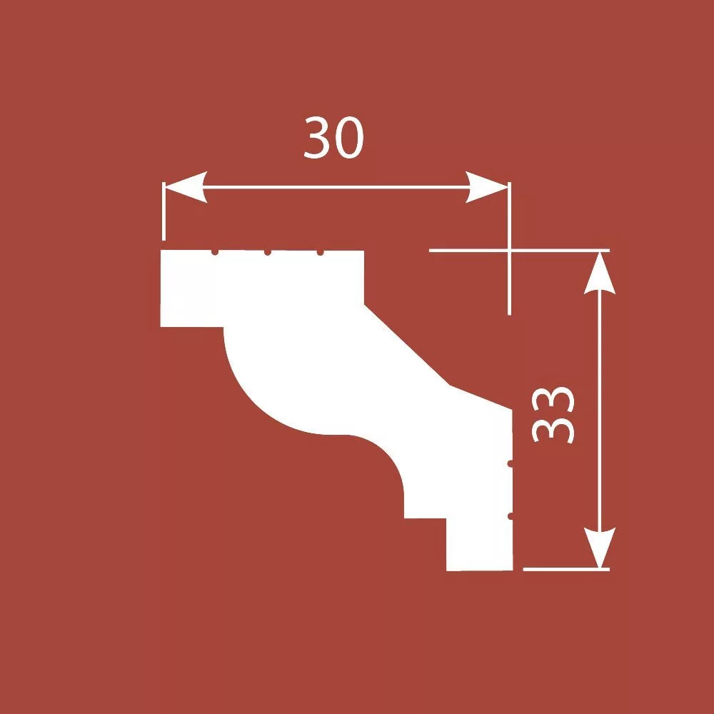Карниз KX047, 33х30, 2000мм, Экополимер/15. Карниз Cosca Decor изготовлен из ударопрочного экополимера – это композит с добавлением светостабилизатора. Материал изделия уже огрунтован в своей массе, благодаря чему его можно не окрашивать. Он сохранит белый цвет и не пожелтеет со временем. Красить также легко, с экономией на краске, так как грунтовка уже есть!
