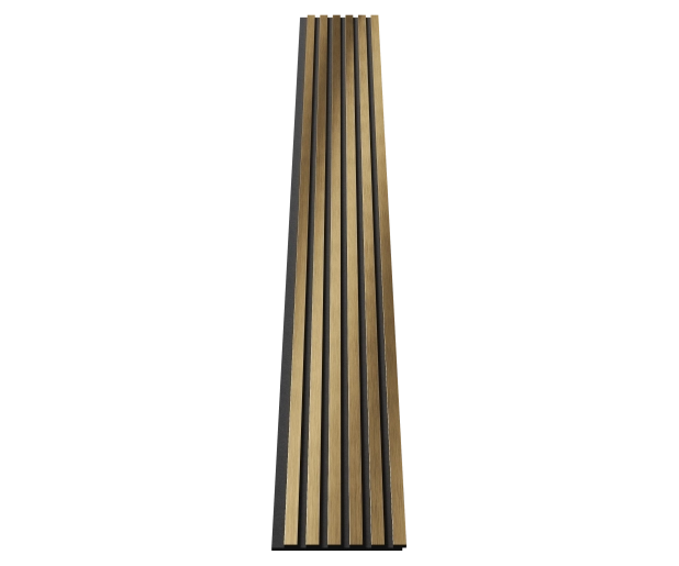 Комплект акуст.панелей, черный войлок, 3000х300х19мм, рейки ЭКОПОЛИМЕР, золото матовое/2шт. Серия Эмираты. Акустические панели Cosca decor – это уникальный по функционалу декоративно-отделочный материал: акустический комфорт в помещении без эха и шума снаружи, современный скандинавский дизайн, легкий самостоятельный монтаж даже поверх старых обоев.