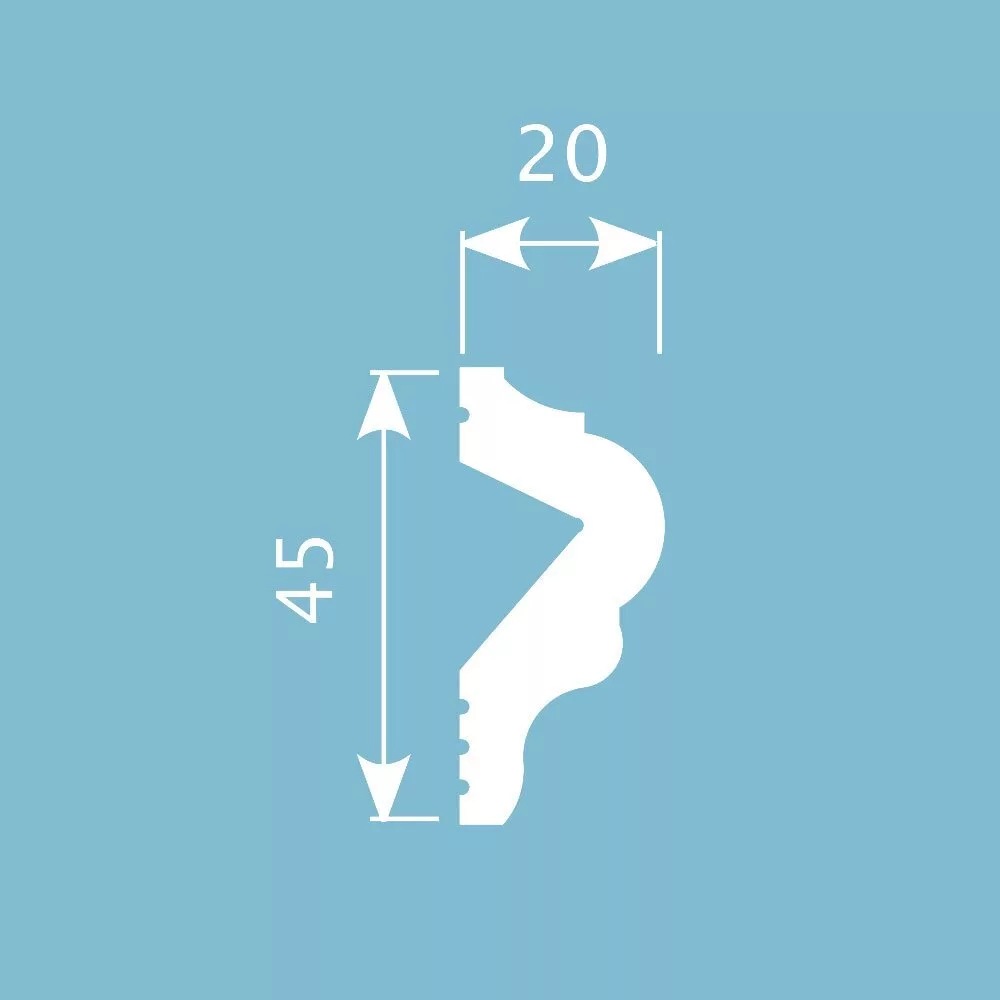Молдинг MX018, 45х20, 2000мм, Экополимер/14. Молдинг Cosca Decor изготовлен из ударопрочного экополимера – это композит с добавлением светостабилизатора. Материал изделия уже огрунтован в своей массе, благодаря чему его можно не окрашивать. Он сохранит белый цвет и не пожелтеет со временем. Красить также легко, с экономией на краске, так как грунтовка уже есть!