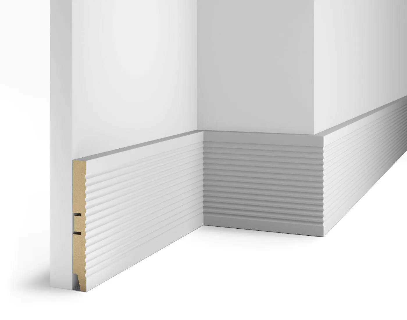 Плинтусы МДФ Cosca Decor это лаконичные и практичные решения для любых помещений. Дизайн напольных плинтусов простой и изысканный, не притягивающий взгляд, но логично завершающий любое решение в интерьере. Кроме того плинтусы повторяют рисунок наличников, что значительно упрощает их подбор. Плинтусы производятся из высококачественного МДФ и облицовывается финиш-плёнкой, защищающей его от внешних воздействий и служащей основой для последующей чистовой окраски плинтуса. Плинтусы можно окрашивать в любые цвета, любыми видами красок, они легко монтируются при помощи клея и саморезов или монтажной планки. Благодаря универсальному дизайну, они подходят для любых типов интерьеров. Делайте интерьеры завершенными с напольными плинтусами из МДФ. Плинтус AP11 под покраску, белый, 133x16x2400 мм, МДФ
