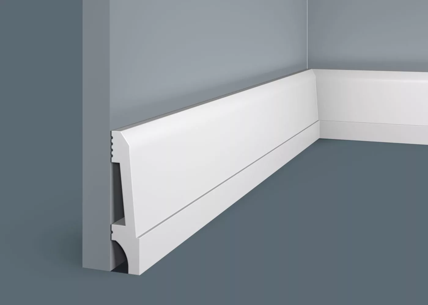 Плинтус PX023, 90х20, 2000мм, Экополимер/12. Плинтус Cosca Decor изготовлен из ударопрочного экополимера – это композит с добавлением светостабилизатора. Материал изделия уже огрунтован в своей массе, благодаря чему его можно не окрашивать. Он сохранит белый цвет и не пожелтеет со временем. Красить также легко, с экономией на краске, так как грунтовка уже есть!