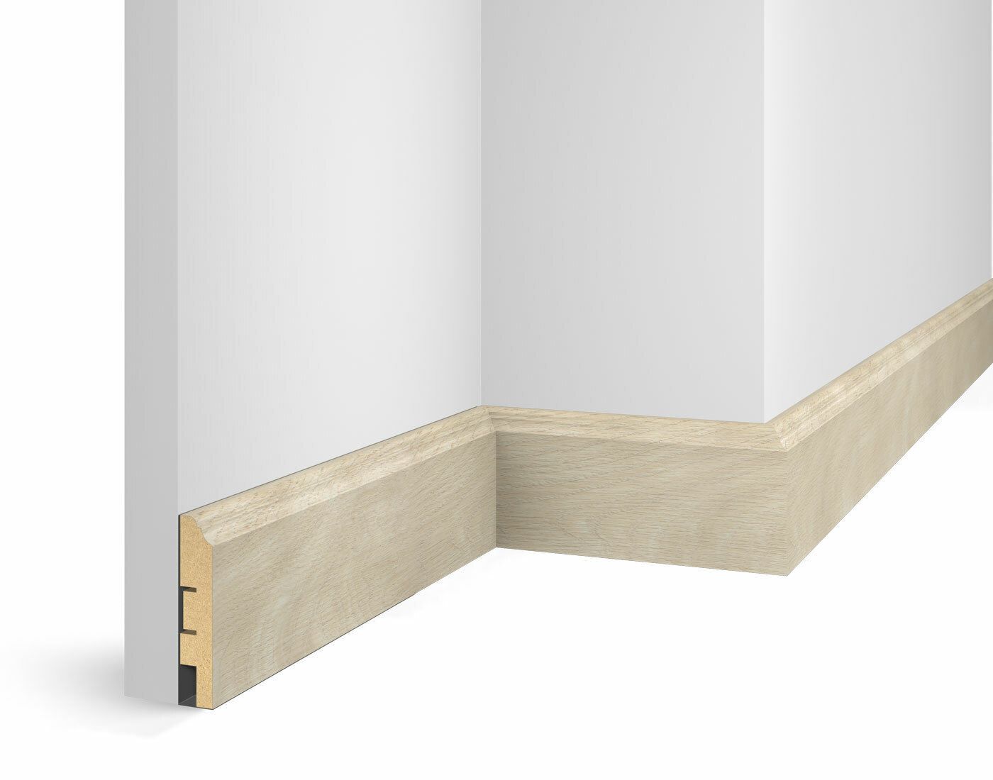 Плинтус WP07, экошпон, ясень Кристалл, 80x16x2400 мм, МДФ. Серия Экошпон. Плинтус Cosca Decor Экошпон имеет декоративное покрытие c 3D эффектом. Особенности производства покрытия, позволили создавать тиснение, которое максимально приближено к натуральному шпону, с визуальными и тактильными ощущениями близкими к натуральной древесине. В составе покрытия многослойная, высококачественная бумага, сочетающая от четырех до шести цветовых оттенков в одном декоре, что дает ощущение перелива и мягкости цвета. Верхний слой покрытия - защитный лак, нанесенный по технологии электронно-лучевого отверждения, что обеспечивают высокую эксплуатационную устойчивость декоративного покрытия.