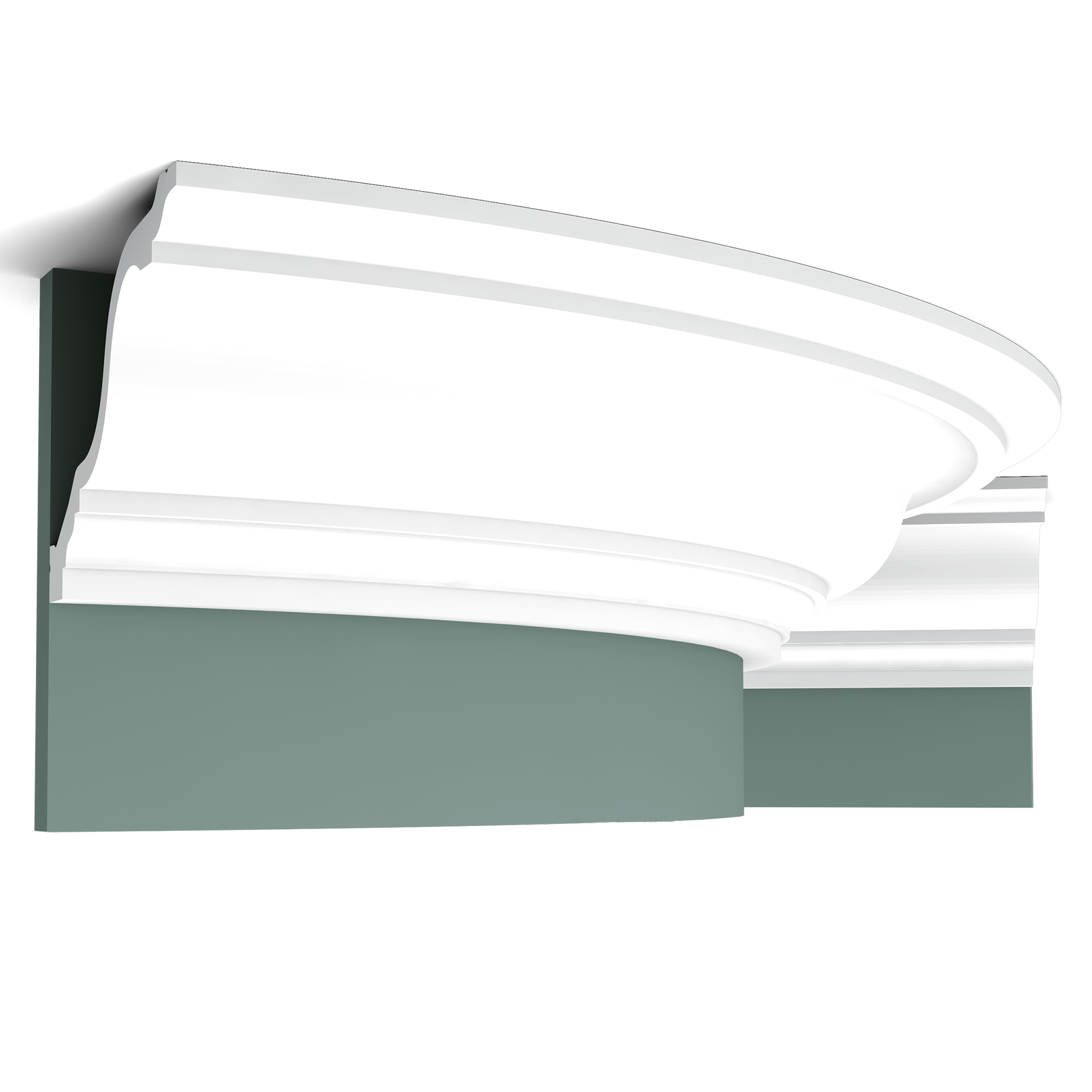 Гибкие - Потолочный плинтус - Гибкая версия C334. Элегантный классический карниз в виде гусиной шеи. Круглые стены или изогнутые поверхности не представляют никакой трудности для технологии Flex. Материал изготовления flex. Для крепления к стене должны использоваться шурупы. Для соединительных швов лепного декора рекомендуем использовать стыковочный клей на полиуретановой основе FX250.
