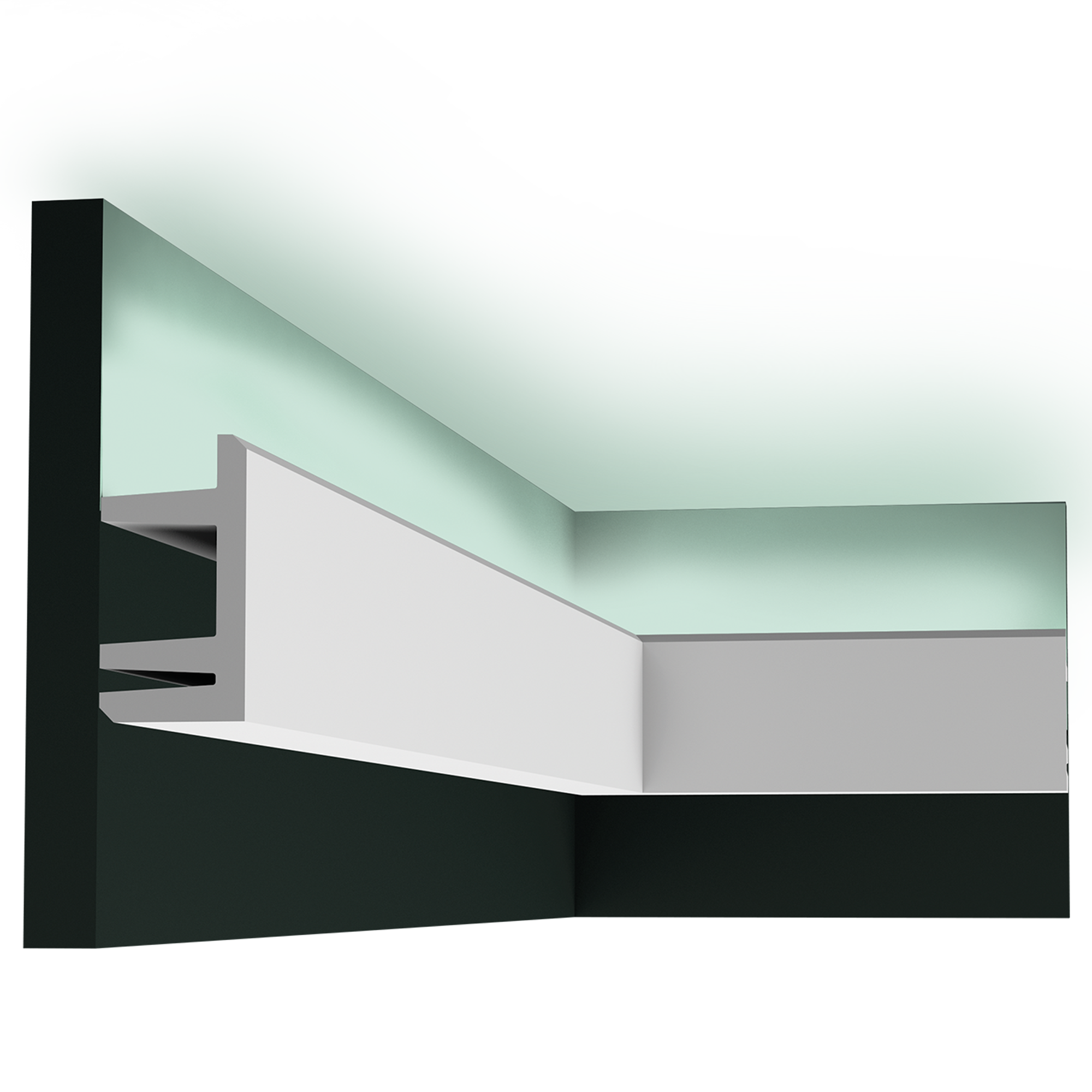 Потолочный плинтус - С помощью этого современного профиля вы сможете легко интегрировать непрямое светодиодное освещение в ваш интерьер. Комбинируйте с другими профилями L3 (C380, C382, C383) и создавайте продуманную игру света и тени в интерьере. Разработан дизайнером Орио Тонини. Материал изготовления purotouch. Для соединительных швов лепного декора рекомендуем использовать стыковочный клей на полиуретановой основе FX250.