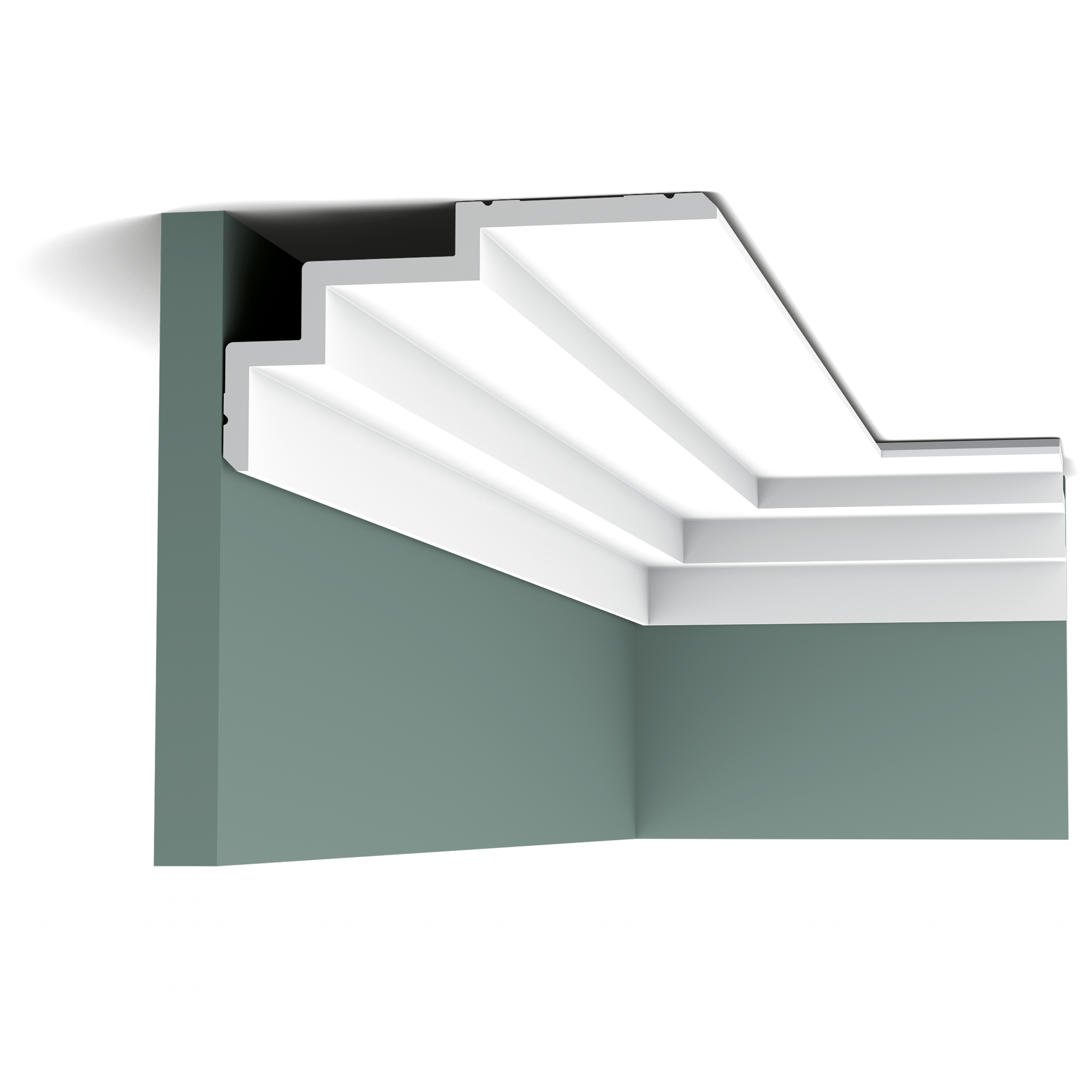 Потолочный плинтус - Строгий и современный профиль из серии Steps. Модель имеет срезанный угол сверху и снизу, благодаря чему создается тонкая линия тени. Разработан дизайнером Орио Тонини. Материал изготовления purotouch. Для соединительных швов лепного декора рекомендуем использовать стыковочный клей на полиуретановой основе FX250.