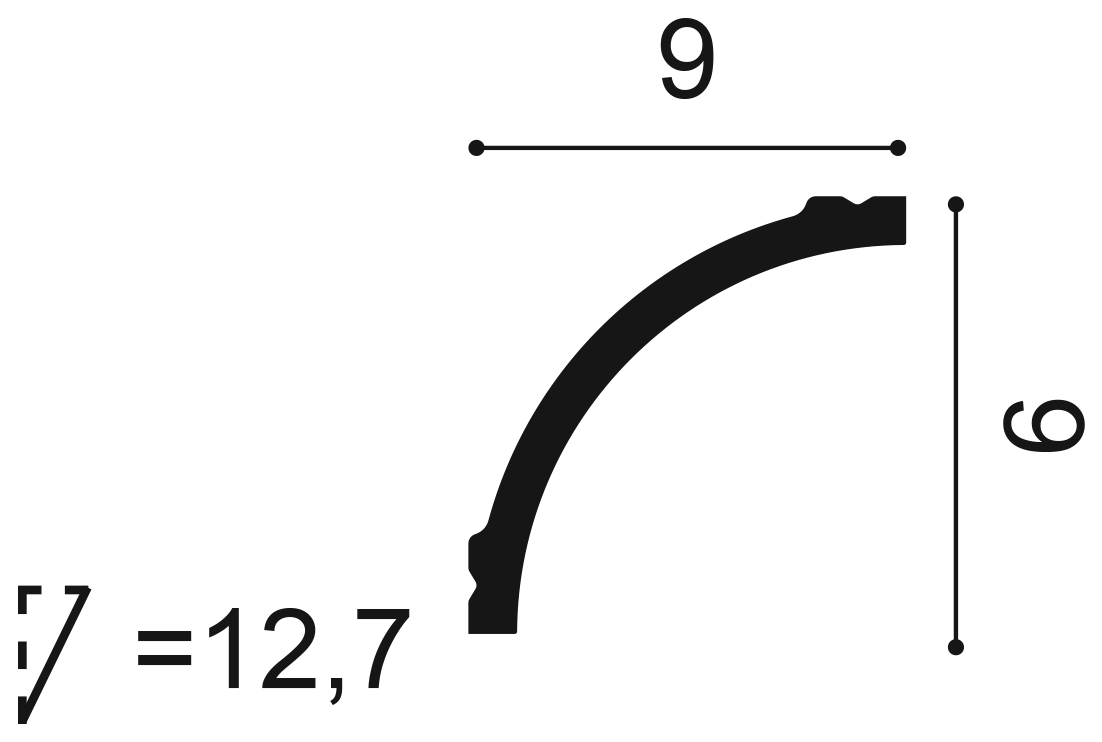 Потолочный плинтус - Карниз среднего размера с простым изгибом. Материал изготовления durofoam. Для соединительных швов лепного декора рекомендуем использовать стыковочный клей на полиуретановой основе FX250.