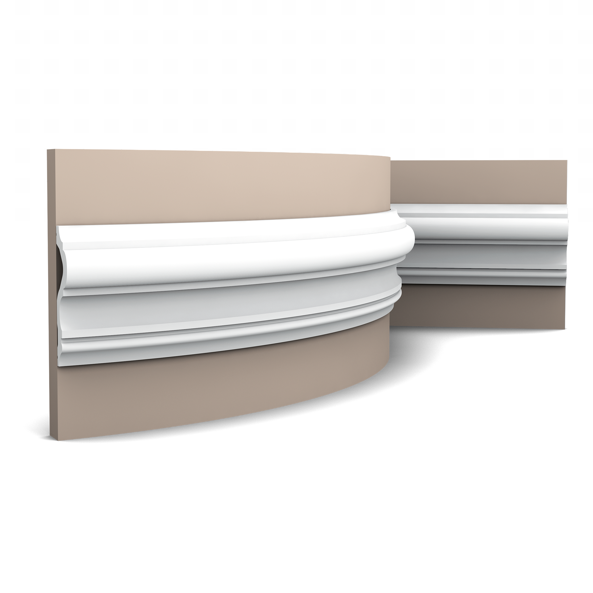 Гибкие - Молдинг - Гибкая версия P8050. Классический настенный молдинг с мягкими формами и линиями придаст интерьеру особую величавость. Круглые стены или изогнутые поверхности не представляют никакой трудности для технологии Flex. Материал изготовления flex. Для крепления к стене должны использоваться шурупы. Для соединительных швов лепного декора рекомендуем использовать стыковочный клей на полиуретановой основе FX250.