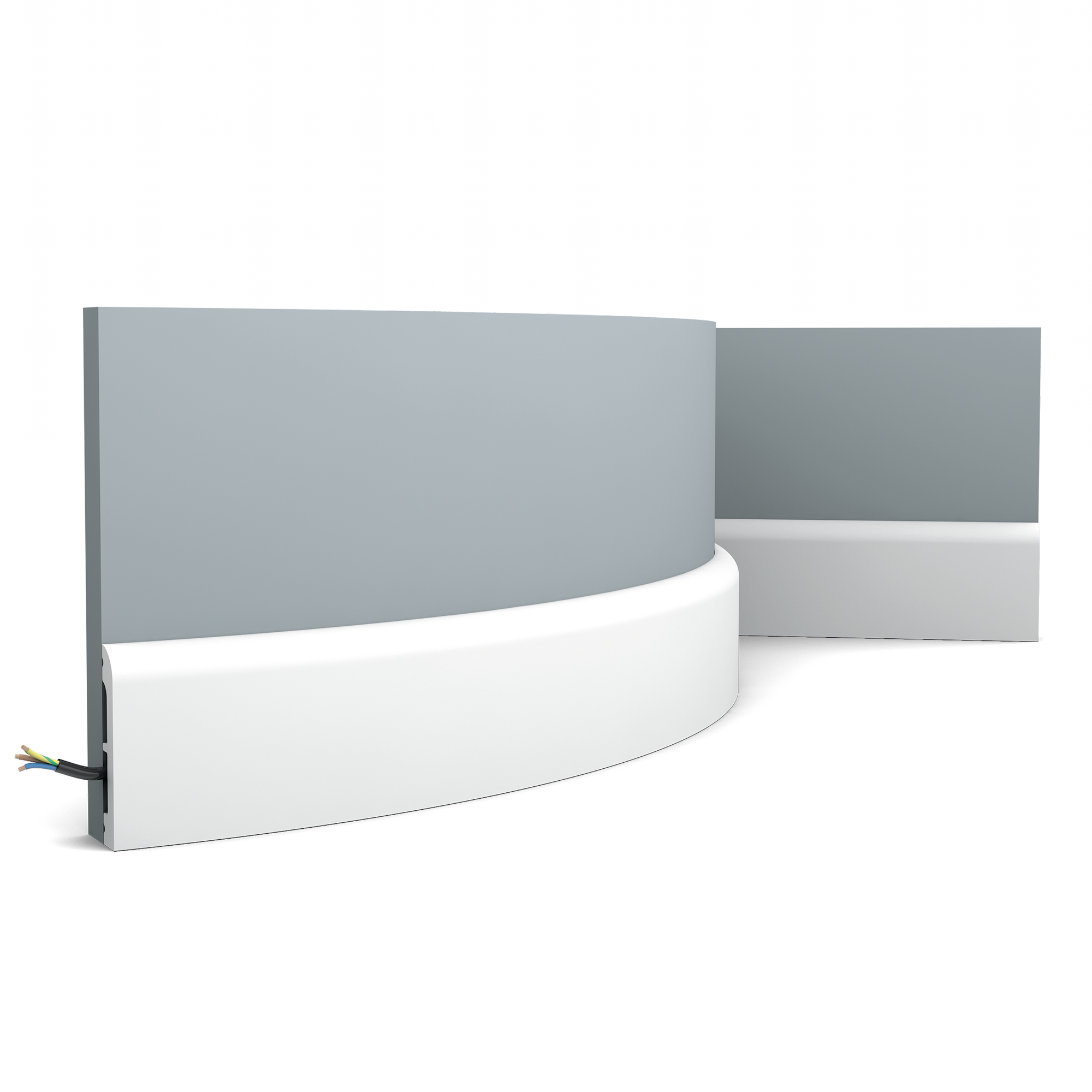 Гибкие - Плинтус - Гибкая версия SX183. Этот многофункциональный плинтус с закругленным верхом предлагает бесконечные возможности для отделки помещения. Круглые стены или изогнутые поверхности не представляют никакой трудности для технологии Flex. Материал изготовления flex. Для крепления к стене должны использоваться шурупы. Для соединительных швов лепного декора рекомендуем использовать стыковочный клей на полиуретановой основе FX250.