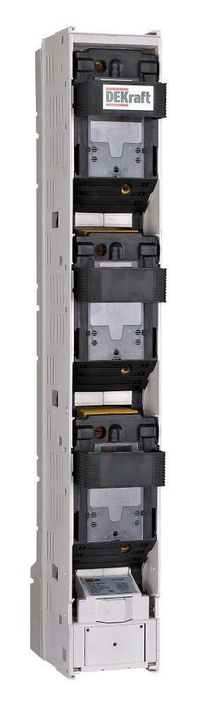 Предохранитель-выключатель-разъединитель вертикальный (ПВР-101) предназначен для включения и отключения нагрузки с видимым разрывом в сетях трехфазного переменного тока до 400 А частотой 50/60 Гц и номинальным напряжением до 690 В. Пофазное отключение, монтаж на шины.