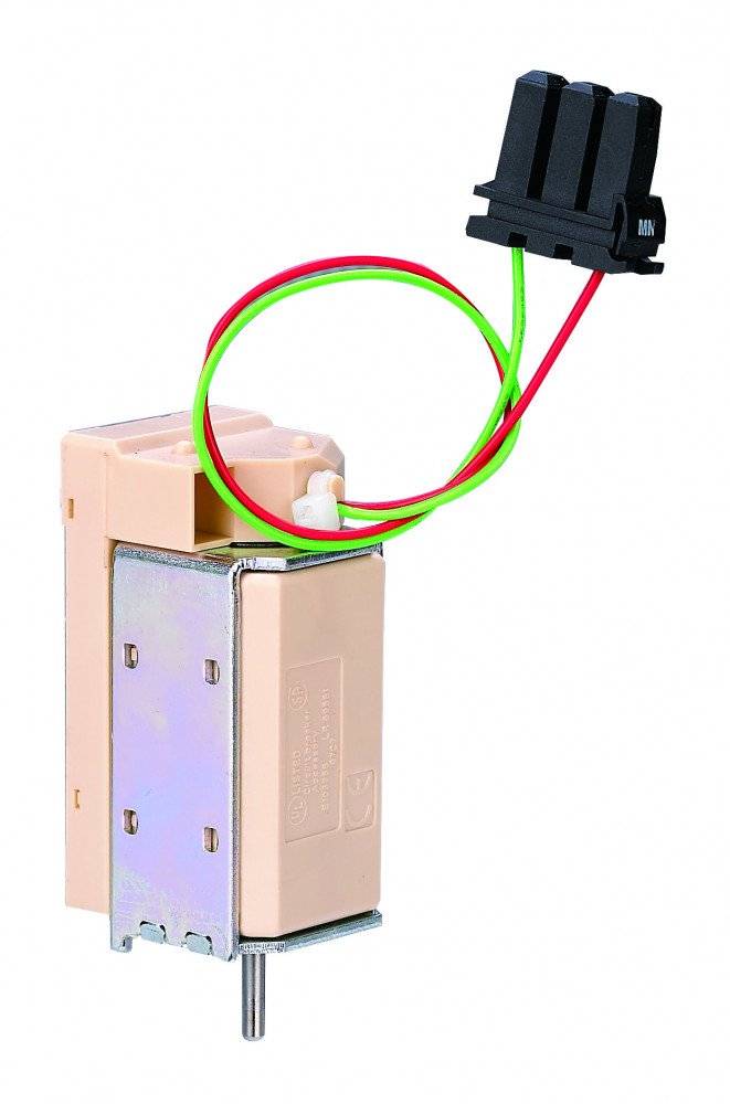 Расцепитель минимального напряжения серии РM-338Е Dekraft; напр. срабатывания 70% от номинального; ном. напряжение 230 В AC. Расцепитель минимального напряжения серии РМ-338Е отключает автоматический выключатель серии ВА-338Е при снижении напряжения от номинального значения, которое подается на клеммы расцепителя минимального напряжения.