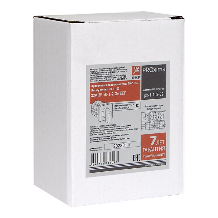 —EKF PROxima Переключатель кулачковый ПК-1-103 32А 3P «0-1-2-3», арт pk-1-103-32
