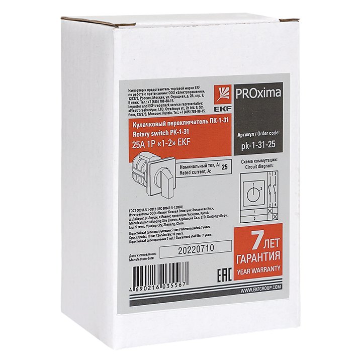—EKF PROxima Переключатель кулачковый ПК-1-31 25А 1P "1-2", арт pk-1-31-25