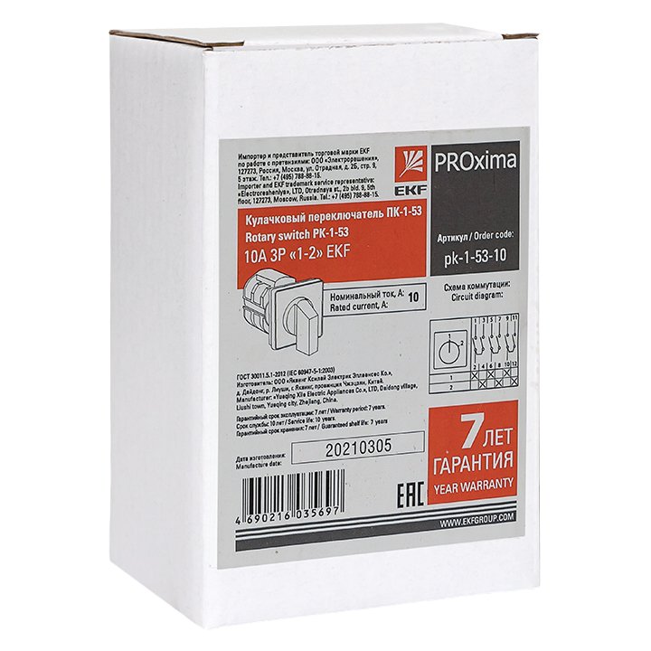 —EKF PROxima Переключатель кулачковый ПК-1-53 10А 3P "1-2", арт pk-1-53-10