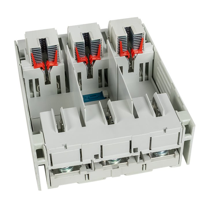 Выключатели-разъединители ВРЭ EKF PROxima предназначены для ручного включения-отключения цепей переменного тока номинальным напряжением до 500 В / 690 В (ВРЭ/ВРЭ с предохранителями) частотой 50 Гц, а также для защиты от коротких замыканий и перегрузки в моделях с плавкими предохранителями (предохранители в комплект поставки не включены). Двойной видимый разрыв цепи и прочный корпус с функцией дугогасительной камеры, выполненный из негорючего полиамида со стекловолокном, обеспечивают максимальную безопасность переключения. Фронтальная защита от прикосновений обеспечивается защитной крышкой. Применяются в качестве аварийного или главного выключателя для токов от 160 до 630 А во вводно-распределительных устройствах, распределительных и шкафах управления и др. Устанавливаются на монтажную панель. Конструктивно ВРЭ EKF PROxima состоит из трехполюсного основания с механизмом замыкания/размыкания контактов и дугогасительными камерами, прозрачной защитной крышки для визуального определения положения контактов и рукоя