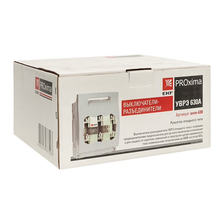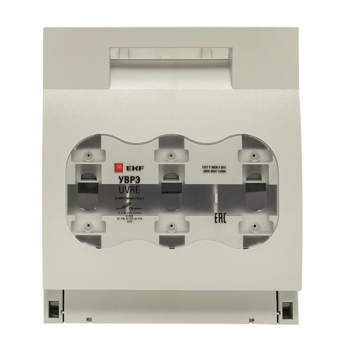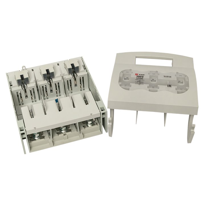 Выключатели-разъединители ВРЭ EKF PROxima предназначены для ручного включения-отключения цепей переменного тока номинальным напряжением до 500 В / 690 В (ВРЭ/ВРЭ с предохранителями) частотой 50 Гц, а также для защиты от коротких замыканий и перегрузки в моделях с плавкими предохранителями (предохранители в комплект поставки не включены). Двойной видимый разрыв цепи и прочный корпус с функцией дугогасительной камеры, выполненный из негорючего полиамида со стекловолокном, обеспечивают максимальную безопасность переключения. Фронтальная защита от прикосновений обеспечивается защитной крышкой. Применяются в качестве аварийного или главного выключателя для токов от 160 до 630 А во вводно-распределительных устройствах, распределительных и шкафах управления и др. Устанавливаются на монтажную панель. Конструктивно ВРЭ EKF PROxima состоит из трехполюсного основания с механизмом замыкания/размыкания контактов и дугогасительными камерами, прозрачной защитной крышки для визуального определения положения контактов и рукоя