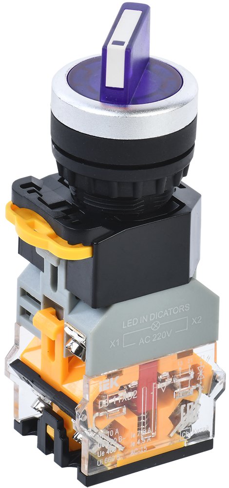 —IEK Переключатель D8-11XD2 2 положения 1з+1р с подсветкой синий, арт BSW30-11XD2-3-14-2-K07