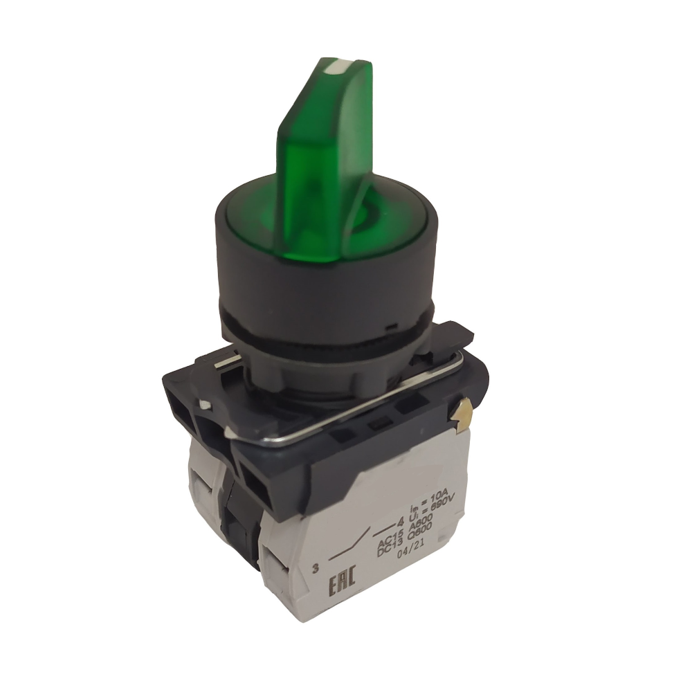 КЭАЗ Переключатель КПЕ1111РЛ-220В-зеленый-1но+1нз-ручка-фикс-2поз-индикатор-IP40
