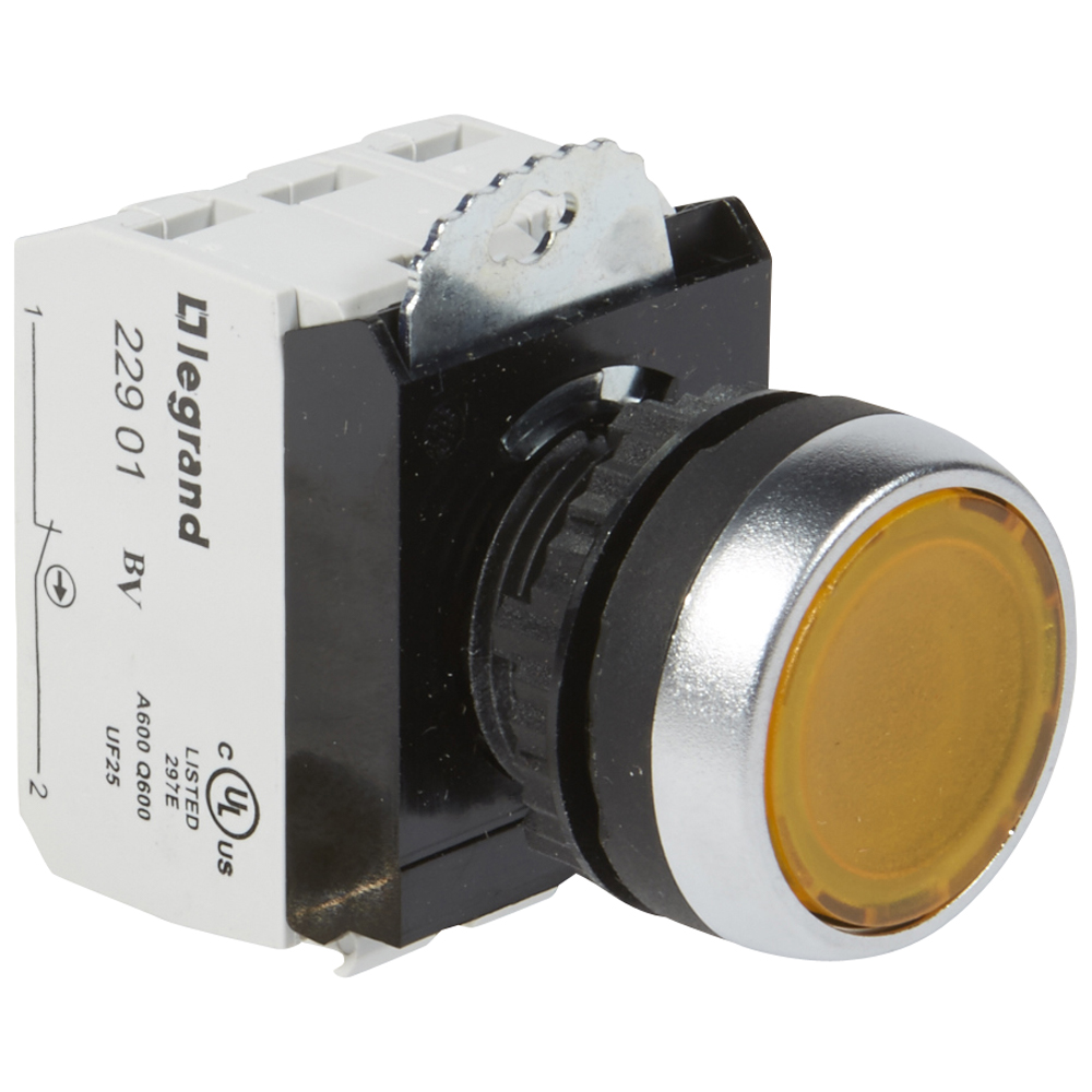 —Legrand Osmoz кнопка с подсв.ЖЕЛТ.без фикс. 12-24В+НО+Н3 конт.бл., арт 023754