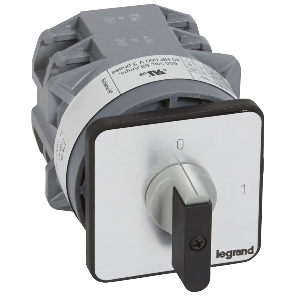 —Legrand Переключатель на 2 направления с положением ''0'', 45° PR 12 1П 2 контакта крепление на дверце, арт 027430