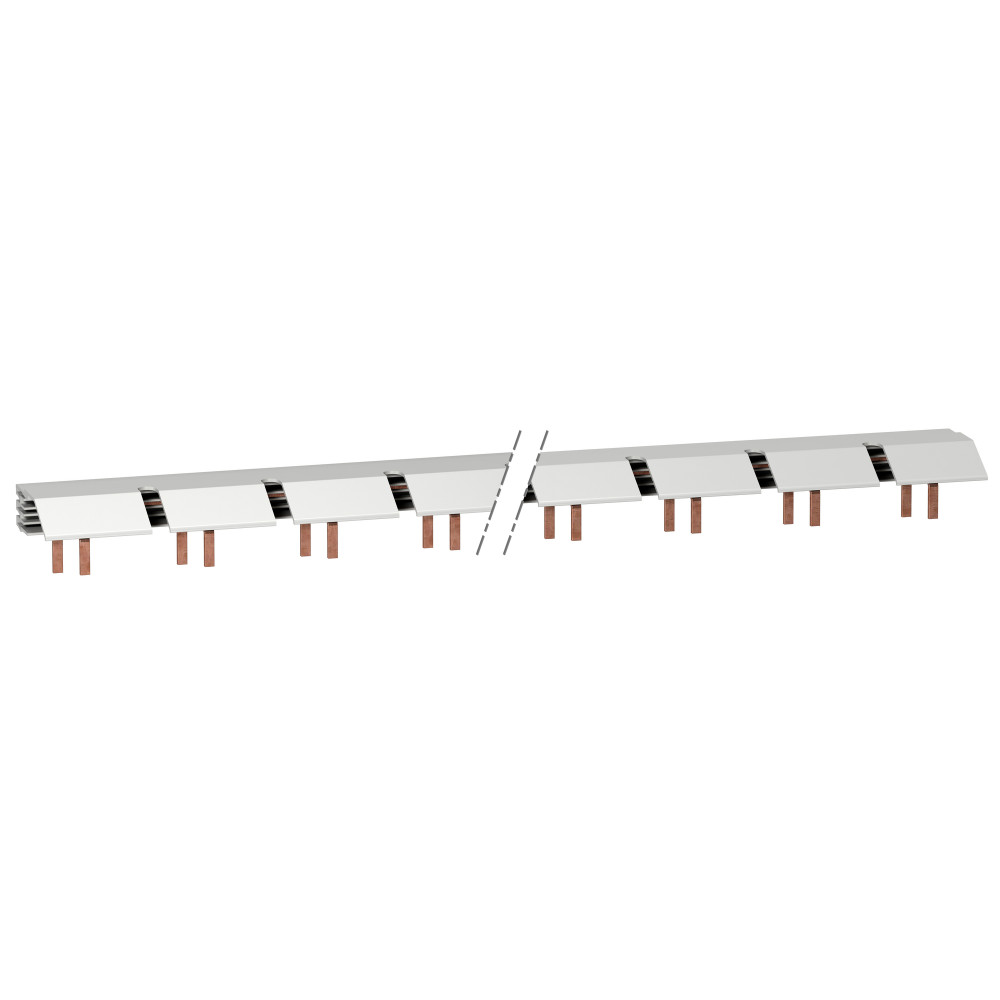 ШИНКА ГРЕБЕНЧАТАЯ 1П+H ДЛЯ DPN Vigi (NL1…(ШАГ9ММ)) 56 МОД.18ММ 80А РАЗРЕЗАЕМАЯ. Подключение модульных устройств iDPN, iDPN Vigi и DPN N Vigi возможно с помощью гребенчатых шинок шириной 9 мм. В специальных гребенчатых шинках для автоматических выключателей предусмотрен промежуток 9 мм для вставки вспомогательных контактов iOF, iSD, iOF/SD+OF. Гребенчатые шинки для автоматических выключателей 3P+N и вспомогательных устройств совместимы с распределительными щитами Prisma.