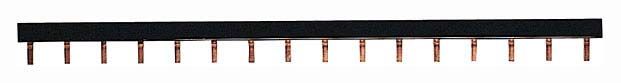 ГРЕБЕНЧАТАЯ ШИНКА 4-Х ПОЛЮСНАЯ ШАГ 27ММ. Использование гребенчатых шинок упрощает установку оборудования. Они могут быть разрезаны за один заход. В комплект входят 2 боковые заглушки IP20. После разрезания шинки установка заглушек обязательна. На каждую сторону шинки нанесена маркировка для идентификации фаз при установке во всех позициях. Места разрезов помечены на изоляции.