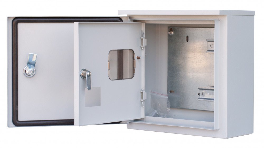 Щит распределительный учетный серии ЩРУН Dekraft; навесной; для однофазного счетчика; номинальный ток до 125 А; исполнение – 7 мод. х 18 мм, 1 ряд; ВхШхГ - 300х310х150 мм; материал – сталь; цвет - серый (RAL 7032); степень защиты – IP54. Щиты ЩРУН имеют монтажную панель для крепления счетчика, DIN-рейки для модульной аппаратуры, элементы крепления шин N и PE, болты заземления на дверце и на корпусе, дверь с замком и ключом. Ввод кабелей для всех щитов осуществляется сверху или снизу.