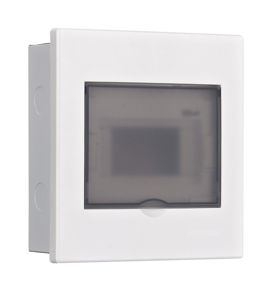 Корпус является встраиваемым, имеет 1 DIN-рейку и 6 модулей (18 мм) для установки устройств, держатель для шинок, шинки N и PE. Дверца фиксируется в верхнем положении. Щиток на 100% совместим с модульным оборудованием Dekraft и Systeme Electric.