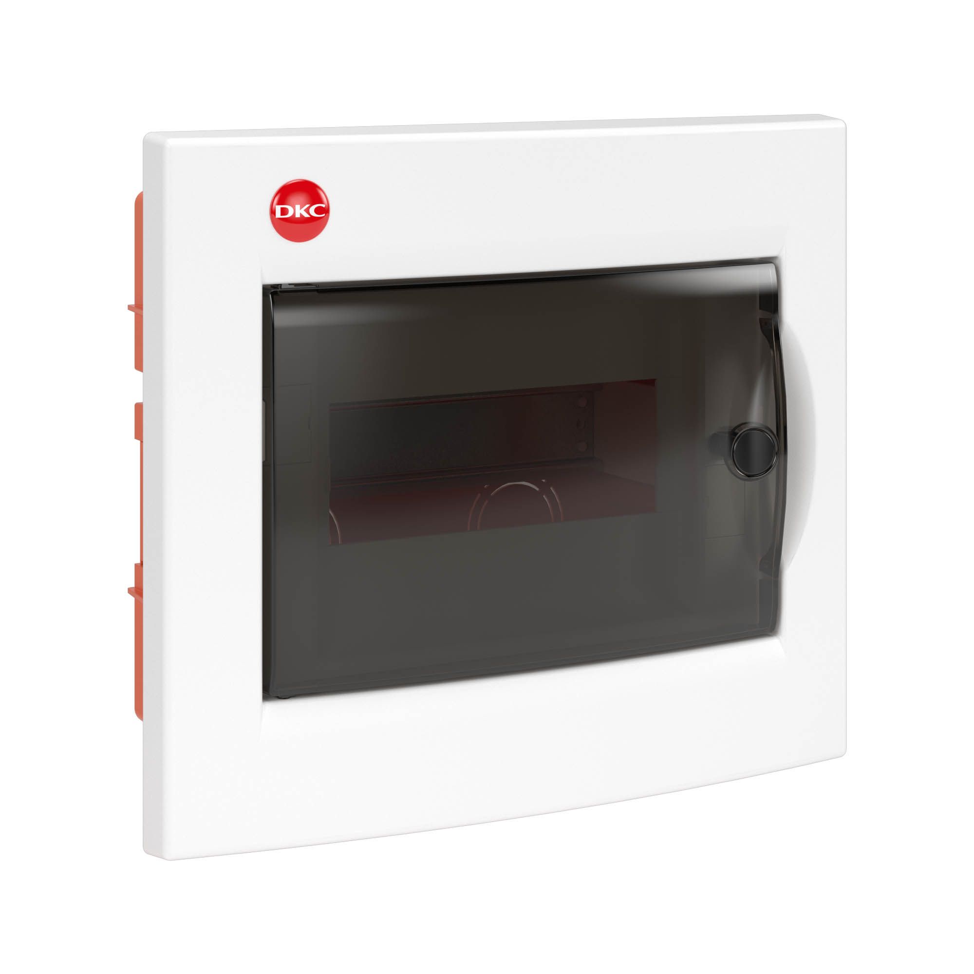 Встраиваемый распределительный щиток ДКС предназначен для монтажа в жилых и административных помещениях для установки автоматических выключателей любых производителей: таймеров, устройств защитного отключения и управления освещением и т.д. Щиток имеет оцинкованную DIN-рейку и суппорт, заглушки для пустых модулей, сборочные винты и заглушки для них, самоклеящуюся этикетку для маркировки цепей. Преперфорированные отверстия и насечки на задней стенке обеспечивают точное соединение с пластиковыми трубами и обеспечивают легкий монтаж. Дверца выполнена из затемненного полупрозрачного пластика. Специальная конструкция петель дает возможность открывать дверцу более чем на 180. Степень пыле- и влагозащиты IP 41. Количество модулей - 8. Параметры щитка: ширина - 261 мм, высота - 225 мм, глубина встраиваемой части - 72 мм. Материал - термостойкий и ударопрочный пластик. Цвет - белый.