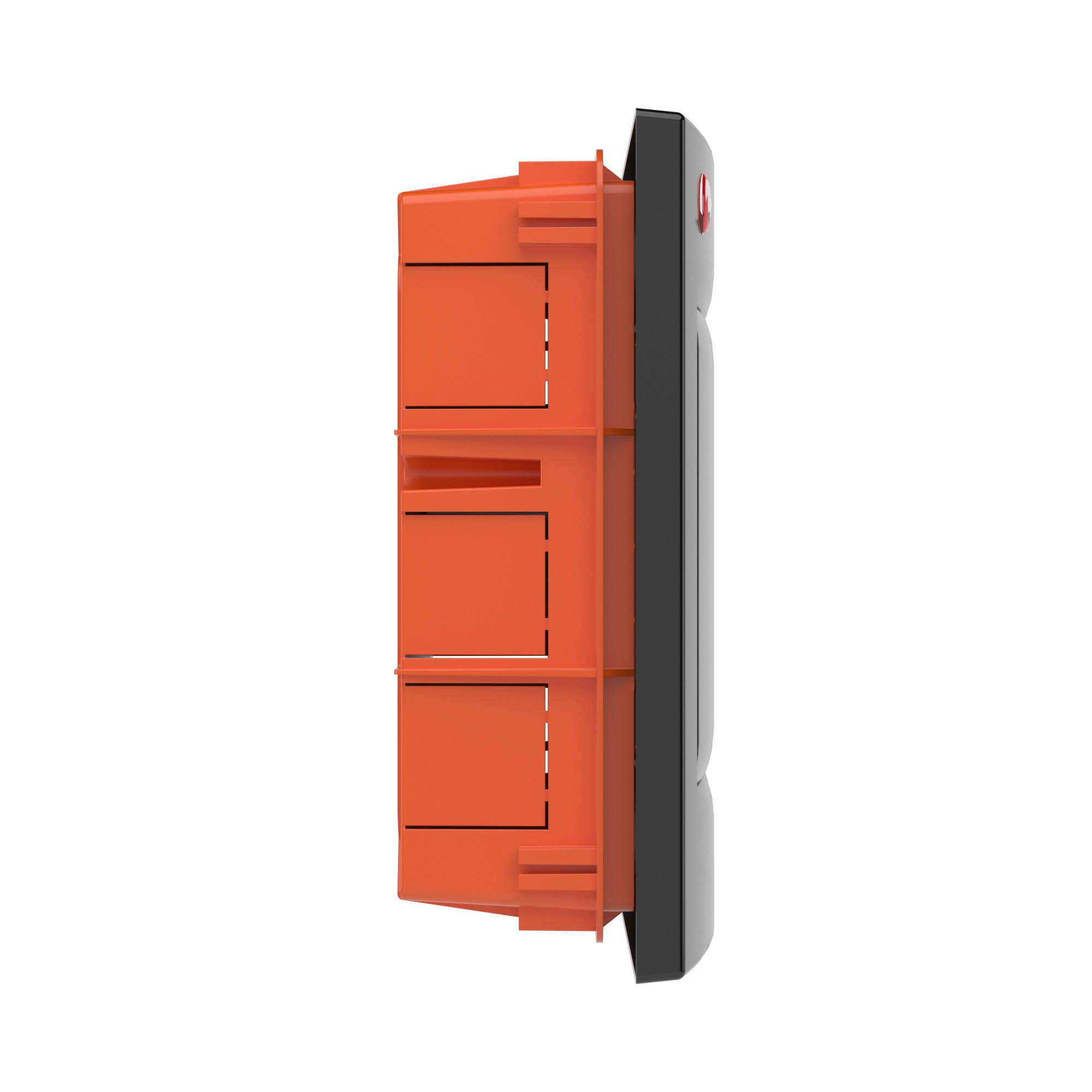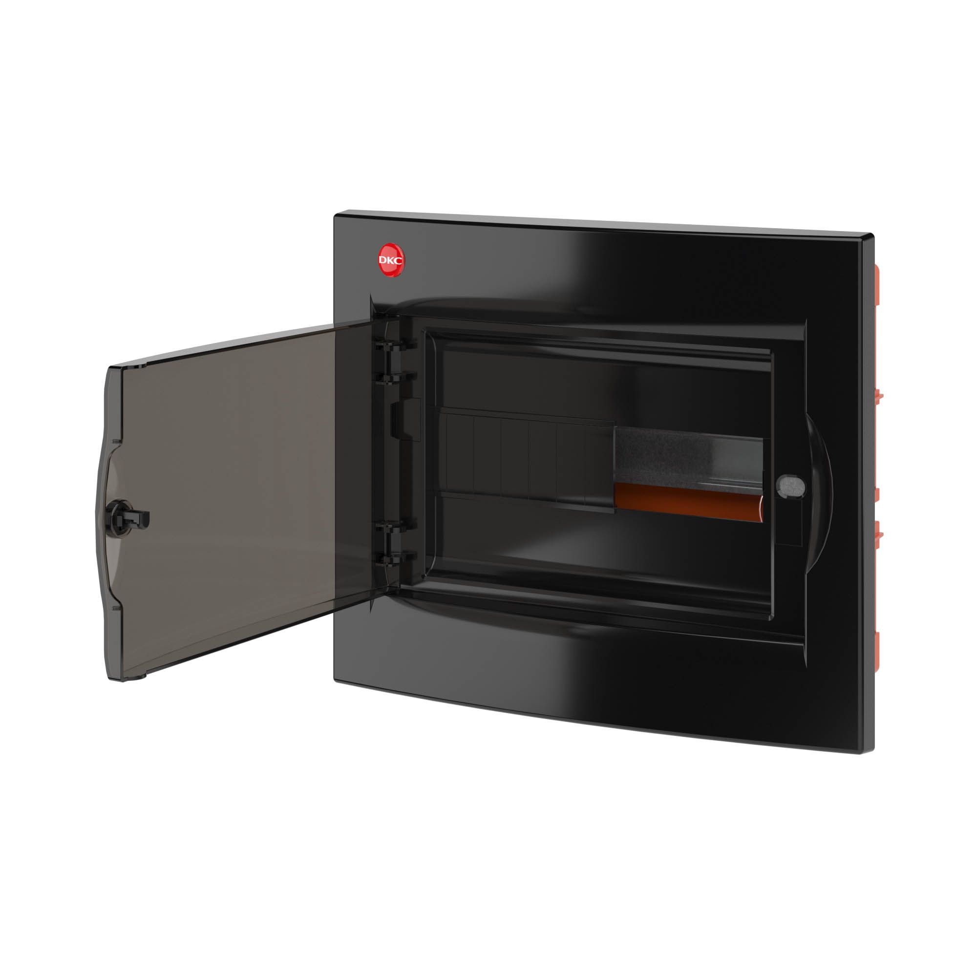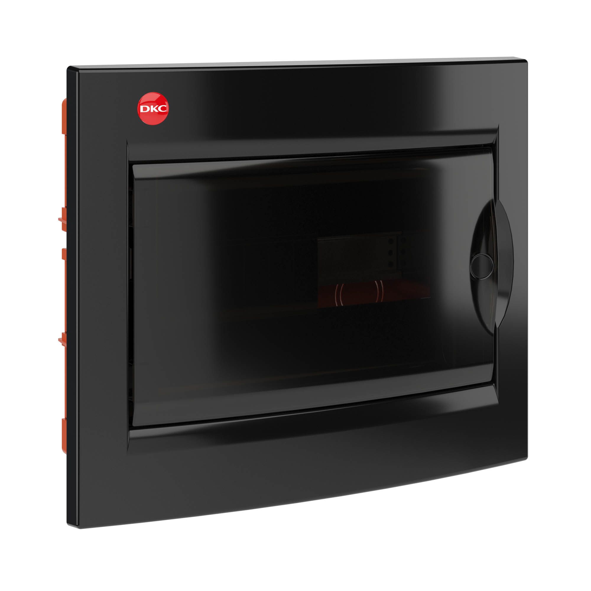 Встраиваемый распределительный щиток ДКС предназначен для монтажа в жилых и административных помещениях для установки автоматических выключателей любых производителей: таймеров, устройств защитного отключения и управления освещением и т.д. Щиток имеет оцинкованную DIN-рейку и суппорт, заглушки для пустых модулей, сборочные винты и заглушки для них, самоклеящуюся этикетку для маркировки цепей. Преперфорированные отверстия и насечки на задней стенке обеспечивают точное соединение с пластиковыми трубами и обеспечивают легкий монтаж. Дверца выполнена из затемненного полупрозрачного пластика. Специальная конструкция петель дает возможность открывать дверцу более чем на 180. Степень пыле- и влагозащиты IP 41. Количество модулей - 12. Параметры щитка: ширина - 333 мм, высота - 275 мм, глубина встраиваемой части - 72 мм. Материал - термостойкий и ударопрочный пластик. Цвет - черный.