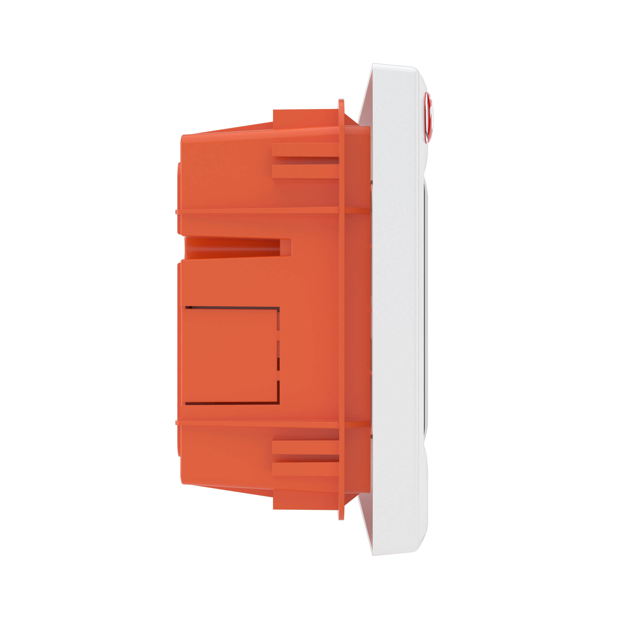 Встраиваемый распределительный щиток ДКС предназначен для монтажа в жилых и административных помещениях для установки автоматических выключателей любых производителей: таймеров, устройств защитного отключения и управления освещением и т.д. Щиток имеет оцинкованную DIN-рейку и суппорт, заглушки для пустых модулей, сборочные винты и заглушки для них, самоклеящуюся этикетку для маркировки цепей. Преперфорированные отверстия и насечки на задней стенке обеспечивают точное соединение с пластиковыми трубами и обеспечивают легкий монтаж. Дверца выполнена из затемненного полупрозрачного пластика. Специальная конструкция петель дает возможность открывать дверцу более чем на 180. Степень пыле- и влагозащиты IP 41. Количество модулей - 4. Параметры щитка: ширина - 169 мм, высота - 180 мм, глубина встраиваемой части - 72 мм. Материал - термостойкий пластик. Цвет - белый.