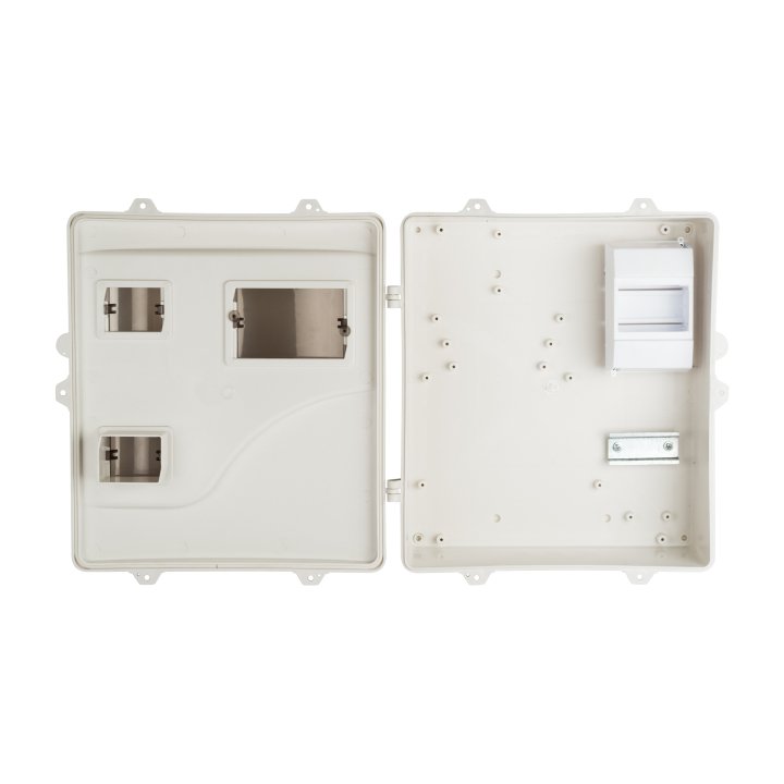 Щиты учетные пластиковые серии ЩУ-П предназначены для установки однофазного/трёхфазного счетчика и модульных аппаратов защиты. Возможность опломбировки счетчика позволяет использовать щит в частном секторе и дачном строительстве. Окошки из прозрачного пластика обеспечивают легкое и удобное считывание показателей электросчетчика, а также дают возможность контролировать текущее состояние аппарата защиты.