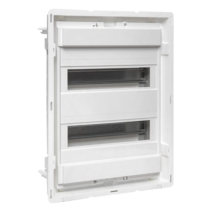 Корпуса пластиковые серии «Nova» предназначены для сборки силовых, слаботочных и комбинированных щитов. На DIN-рейки устанавливается модульное оборудование. На монтажные платы – антенные разветвители, Wi-Fi роутеры, патч-панели и иное слаботочное оборудование. Щиты устанавливаются как в бетонные и кирпичные стены, так и в гипсокартон, монтажные комплекты для установки в гипсокартон входят в комплектацию оснований щитов либо в комплектацию щитов в сборе. Двери щитов можно выбрать их разных материалов – пластик, металл или металл с перфорацией. Также доступны дополнительные аксессуары, необходимые для установки мультимедийного оборудования и существенно упрощающих монтаж щитов. Есть возможность приобрести как отдельно основание щита и дверь, так и основание с дверью в комплекте в одной коробке. Основные преимущества: съемные шасси с din-рейками, съемные кабельные фланцы, гребенка для фиксации входящих проводников, регулировка дверей по глубине, современный минималистичный дизайн