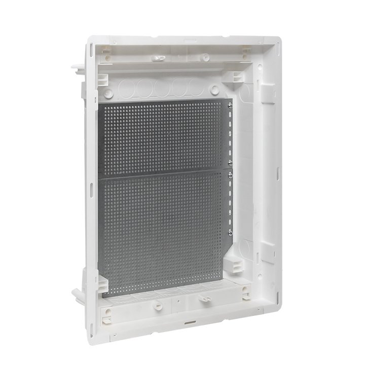 Корпуса пластиковые серии «Nova» предназначены для сборки силовых, слаботочных и комбинированных щитов. На DIN-рейки устанавливается модульное оборудование. На монтажные платы – антенные разветвители, Wi-Fi роутеры, патч-панели и иное слаботочное оборудование. Щиты устанавливаются как в бетонные и кирпичные стены, так и в гипсокартон, монтажные комплекты для установки в гипсокартон входят в комплектацию оснований щитов либо в комплектацию щитов в сборе. Двери щитов можно выбрать их разных материалов – пластик, металл или металл с перфорацией. Также доступны дополнительные аксессуары, необходимые для установки мультимедийного оборудования и существенно упрощающих монтаж щитов. Есть возможность приобрести как отдельно основание щита и дверь, так и основание с дверью в комплекте в одной коробке. Основные преимущества: съемные шасси с din-рейками, съемные кабельные фланцы, гребенка для фиксации входящих проводников, регулировка дверей по глубине, современный минималистичный дизайн