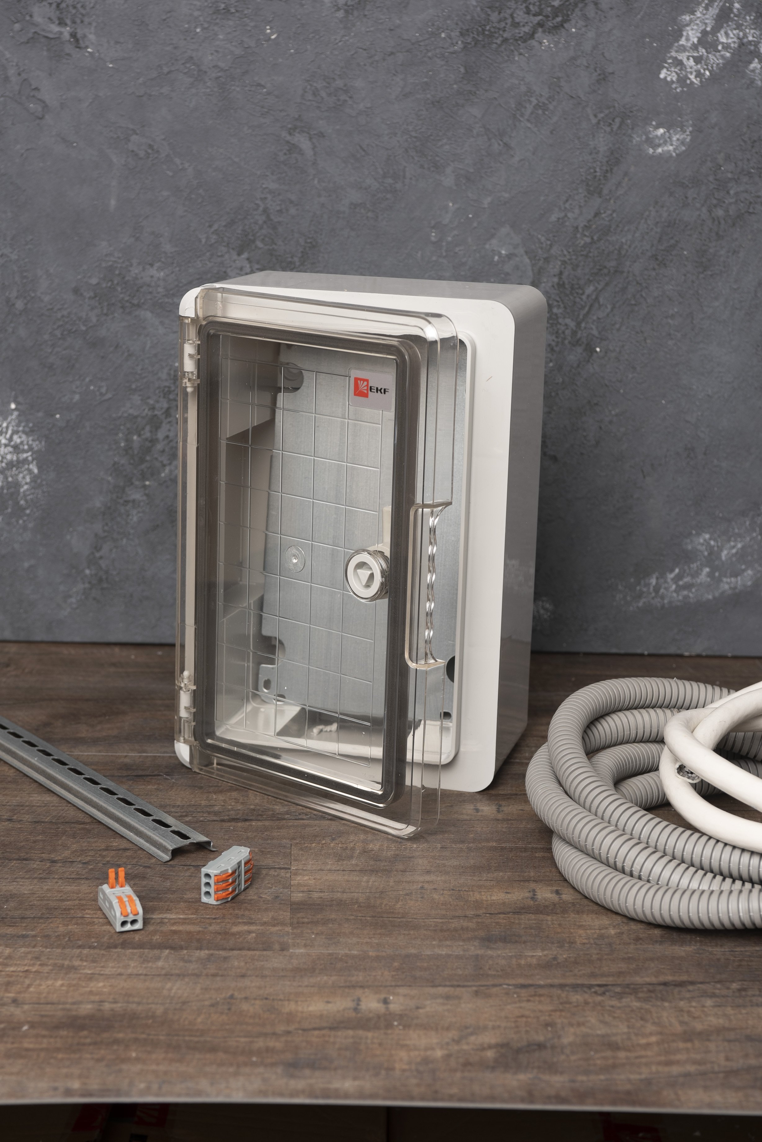 Щиты пластиковые ЩМП-П IP65 навесного исполнения с монтажной панелью предназначены для установки модульного и силового электрооборудования для сборки щитов автоматизации, распределения и управления. Щиты изготовлены из ударопрочного АБС-пластика и обеспечивают надежную защиту установленного оборудования. Степень защиты IP65 предотвращает проникновение пыли и влаги, обеспечивая безопасное функционирование внутренних компонентов шкафа. Поставляются с двумя типами дверей: глухой и прозрачной.