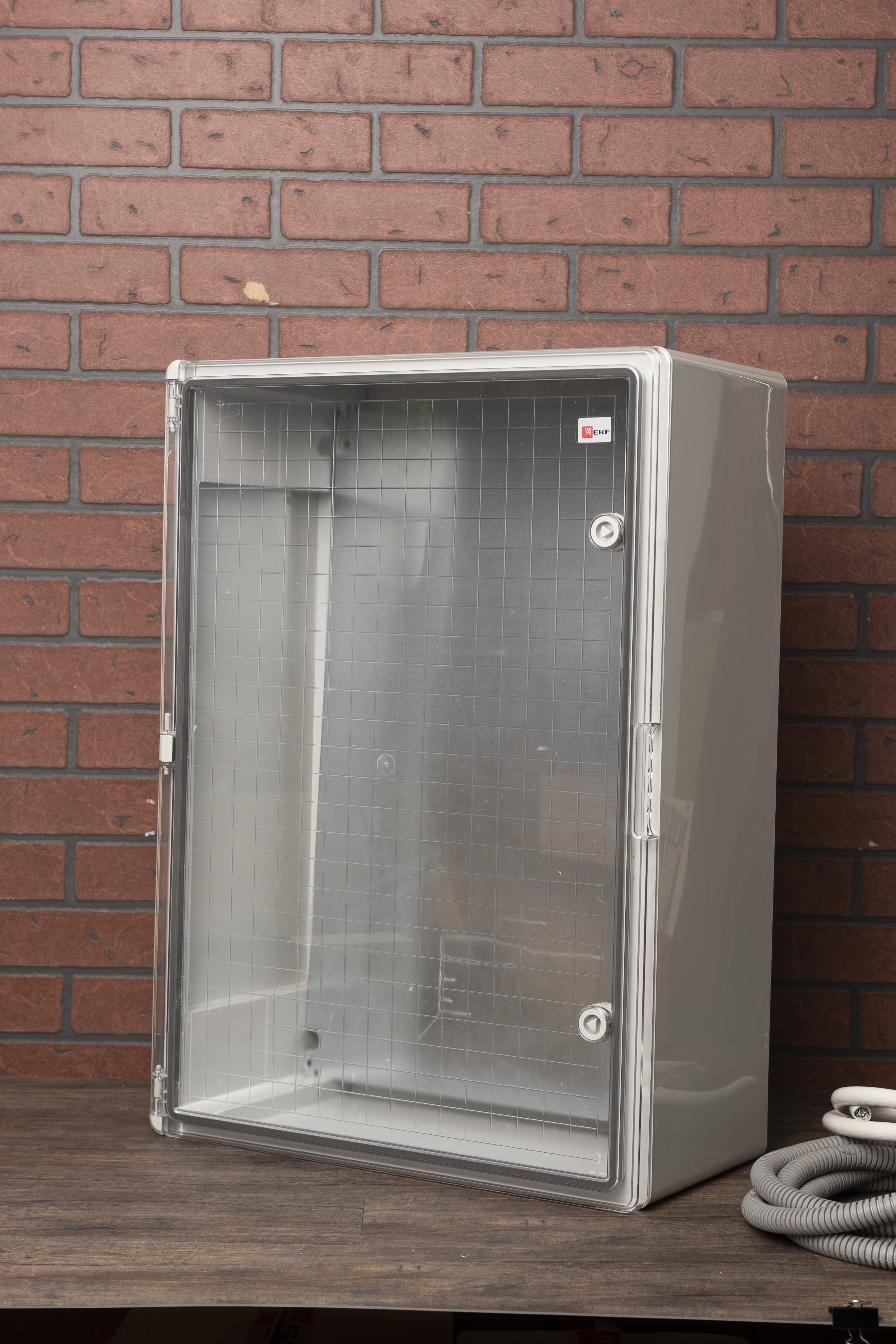 Щиты пластиковые ЩМП-П IP65 навесного исполнения с монтажной панелью предназначены для установки модульного и силового электрооборудования для сборки щитов автоматизации, распределения и управления. Щиты изготовлены из ударопрочного АБС-пластика и обеспечивают надежную защиту установленного оборудования. Степень защиты IP65 предотвращает проникновение пыли и влаги, обеспечивая безопасное функционирование внутренних компонентов шкафа. Поставляются с двумя типами дверей: глухой и прозрачной.